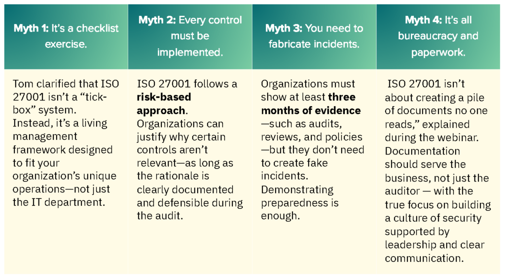 Both experts tackled common misconceptions about ISO 27001 head-on.