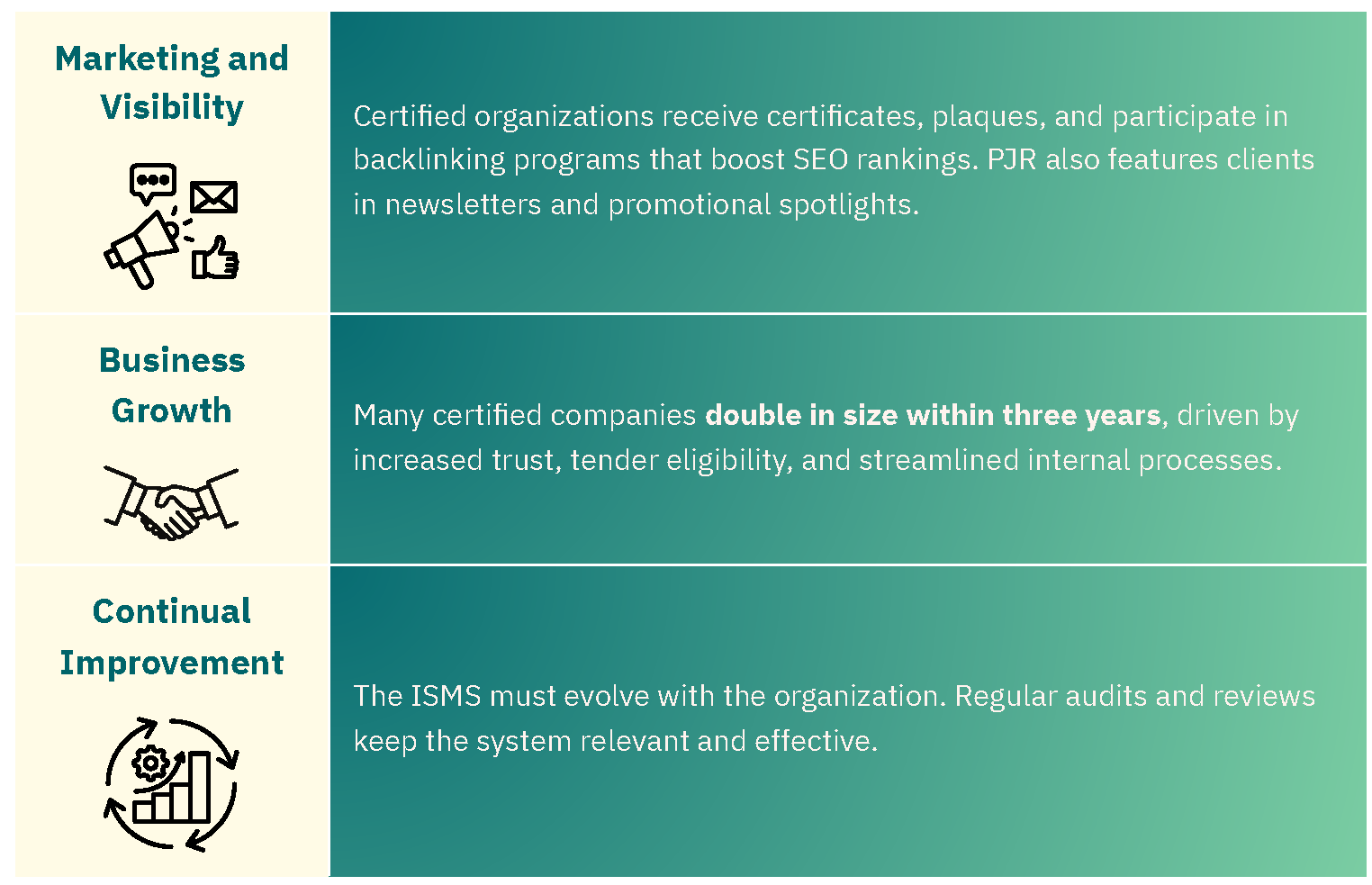 For smaller businesses navigating tenders or supply chain requirements, PJR offers a Pending Letter of Certification — an official document confirming that an audit is scheduled. This letter can be used to demonstrate compliance readiness while the certification is finalized.